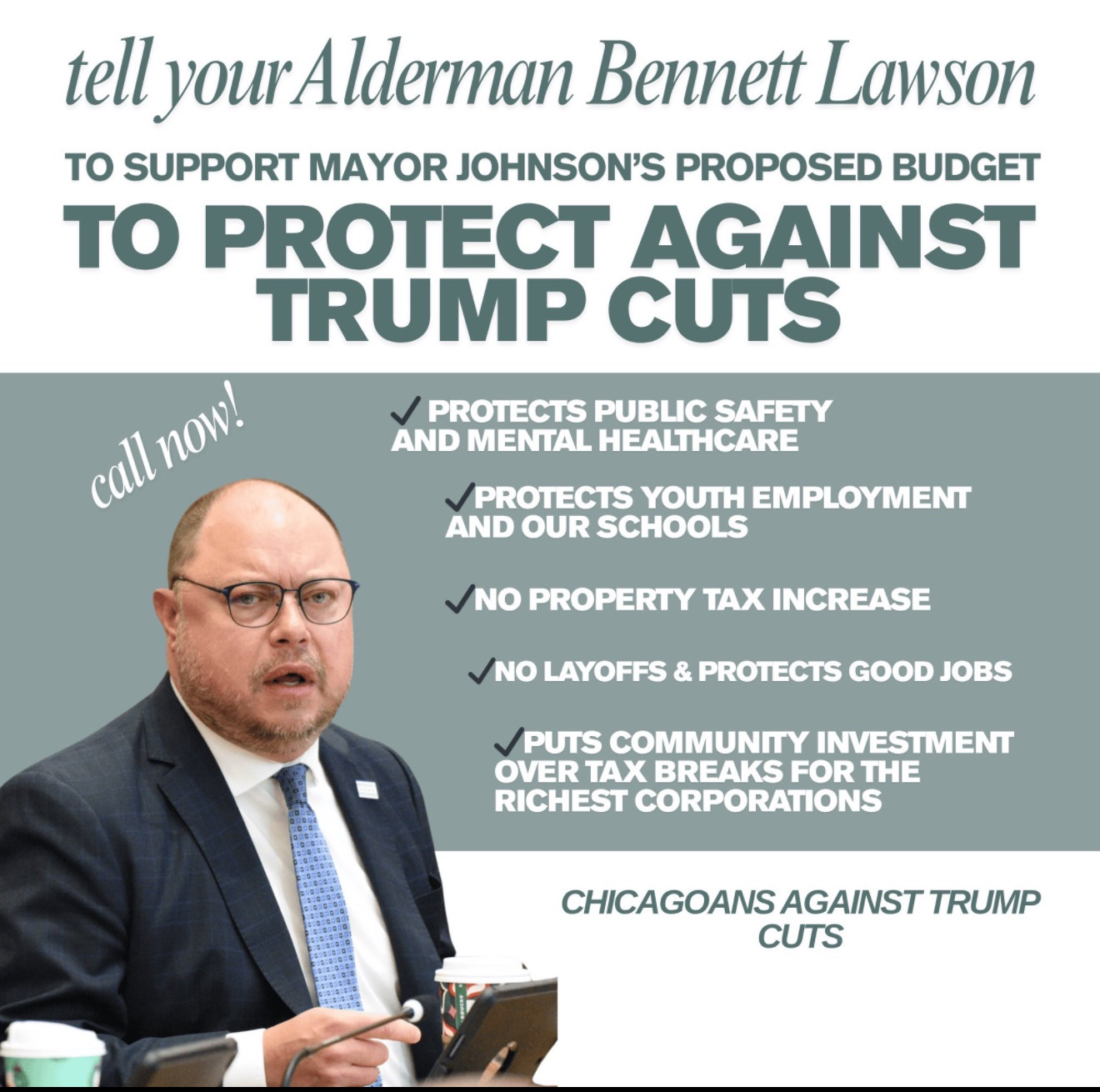 Already, some of the mayor’s allies appear to be framing the conversation via texts to residents, portraying opposition as support for “Trump Tax Cuts.” This strategy seems aimed at preemptively framing critics as politically opposed, setting the stage for a narrative that those who don’t back the budget are aligned with Trump - a particularly charged claim in Chicago’s current political climate. Example: